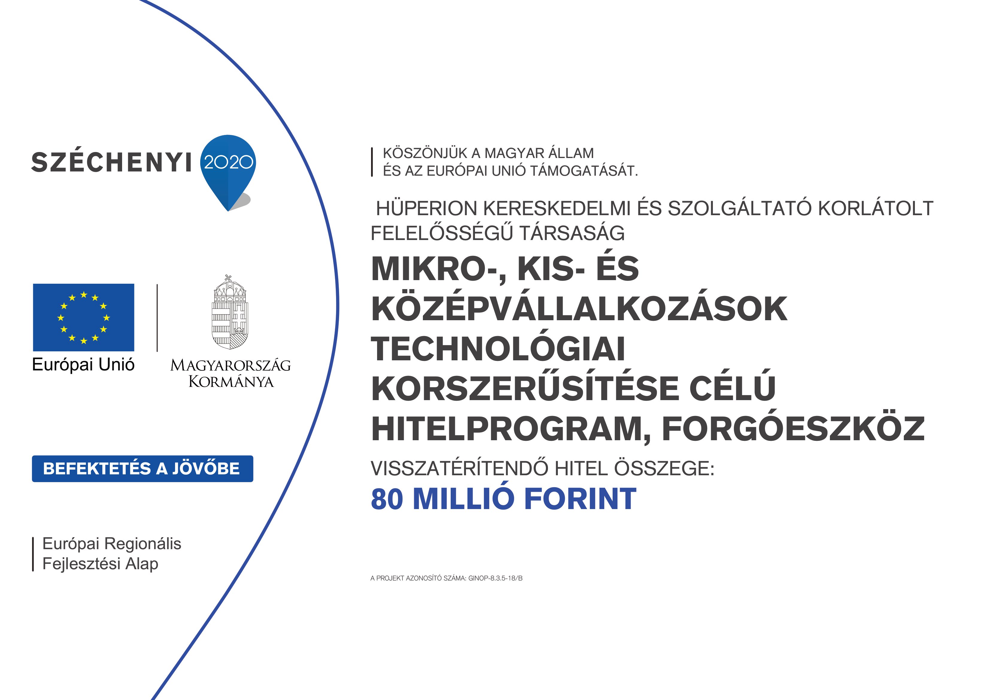 Mikro-, Kis –és Középvállalatok Technológiai Korszerűsítése Célú Hitelprogram a Hüperion Kereskedelmi Kft. részére.